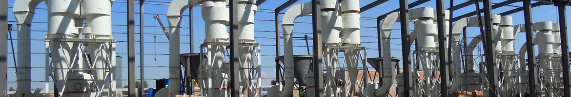 大塊物料經(jīng)顎式破碎機破碎到所需粒度后,由提升機送至儲料斗,再由皮帶機將物料均勻定量連續(xù)地送入2臺MTW175歐版磨的主機磨室內(nèi)進行研磨。粉磨后的物料被風機氣流送入選粉機進行分級,在選粉機葉輪的作用下,不符合細度要求的物料落入磨室內(nèi)重新碾磨,合格的物料則經(jīng)空氣斜槽進入旋風集粉器內(nèi),進行分離收集,經(jīng)排料裝置排出即為成品粉體。